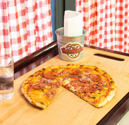 "Siamo ormai clienti abituali di questa pizzeria. Ottima pizza, patatine fritte insuperabili e sempre estremamente puntuali! Consigliatissimo!"